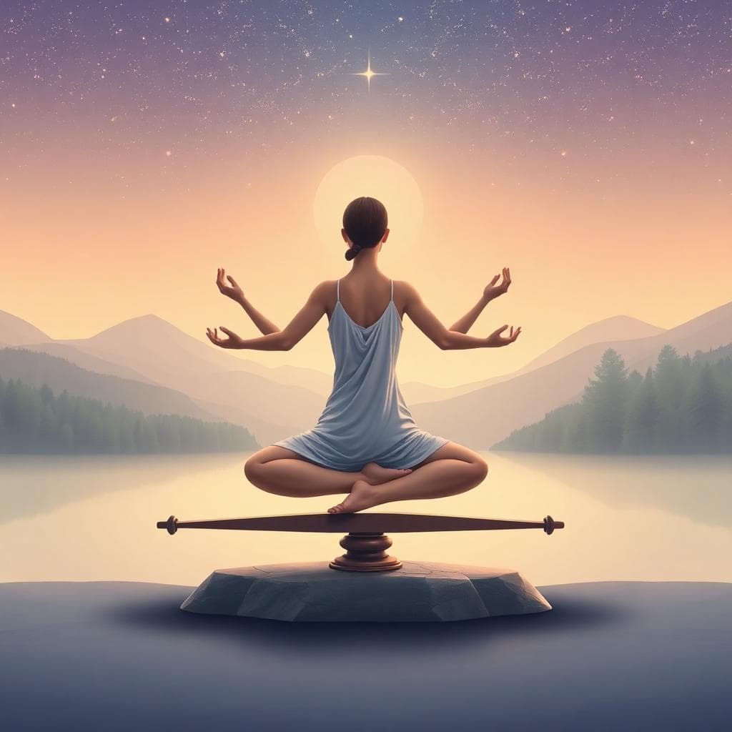 - 圖像說明:一個人在天秤圖上保持平衡的姿勢,象徵上升天秤座對穩定與和諧的天然追求。