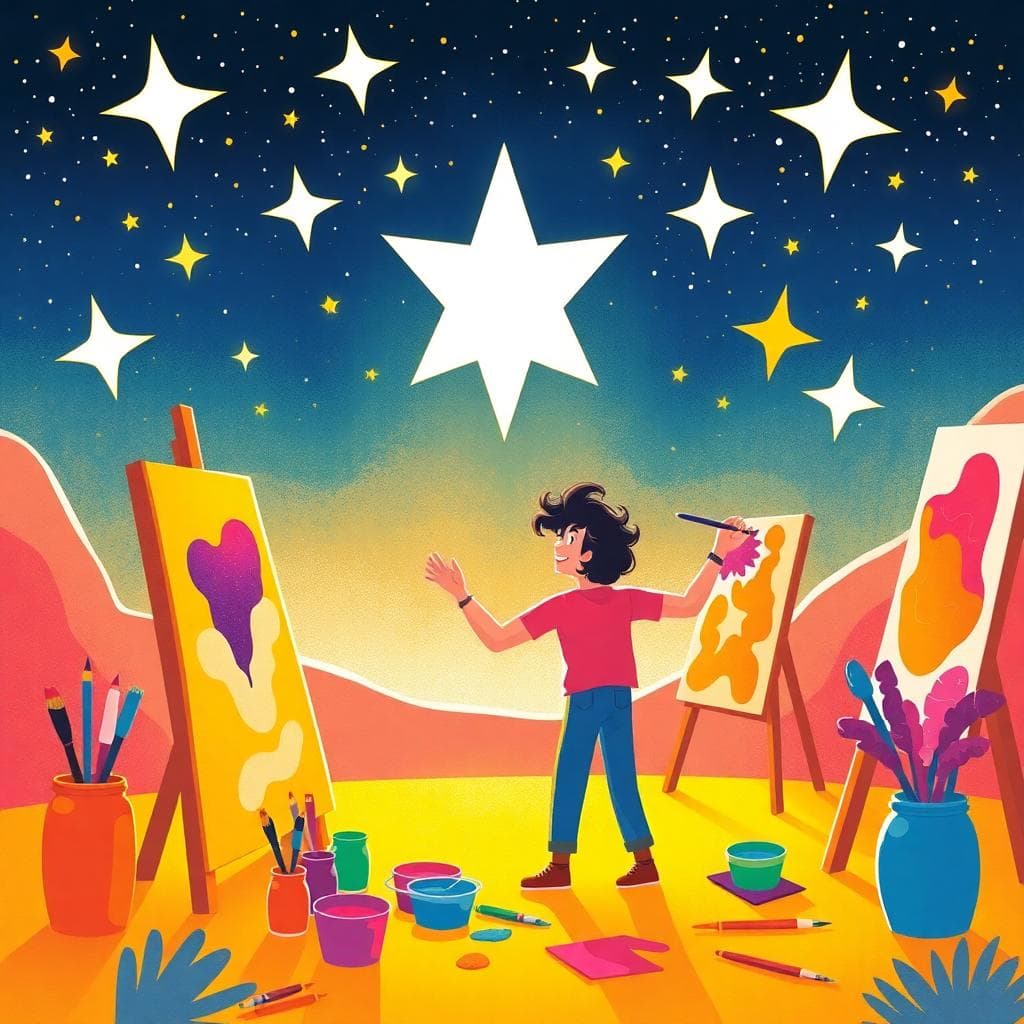 • 圖像描述:兩人以平和的語氣交換意見,背景為安詳夜空,象徵穩定的情緒互動。Image generated by AI