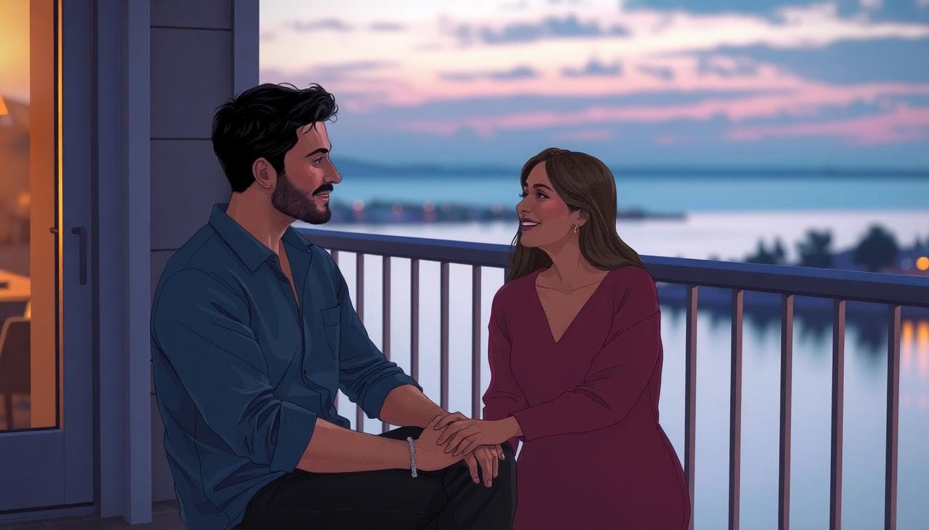 - 圖像:兩人坐在安靜的角落,彼此凝視、手放在桌上,示意重新開始的信任過程。
