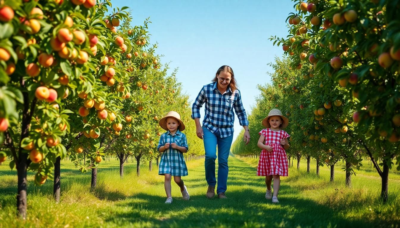 image Caption: 家庭在果園採果的場景,親子同遊的愉悅氛圍,適合用作本文插畫